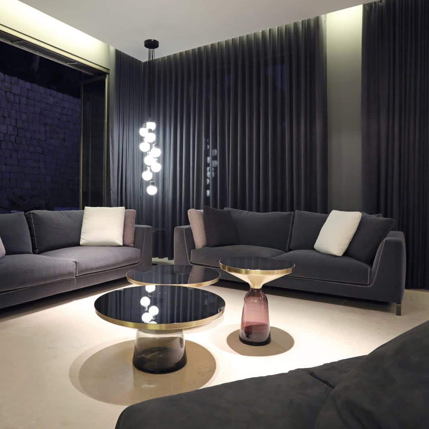 أريكة وستائر بيضاء